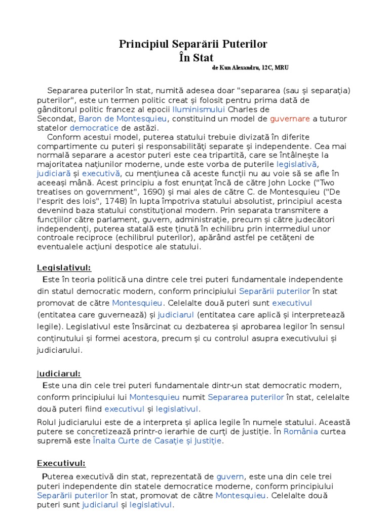 Principii De Bază Ale Democrației Separarea Puterilor Domnia Legii