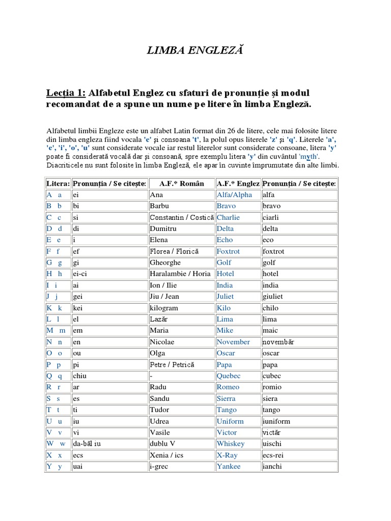 Alfabetul Si Pronuntia Cuvintelor In Engleza
