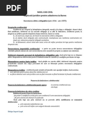 Executarea Silita In Natura A Obligatiilor Explicatii Juridice Pentru Admiterea In Barou
