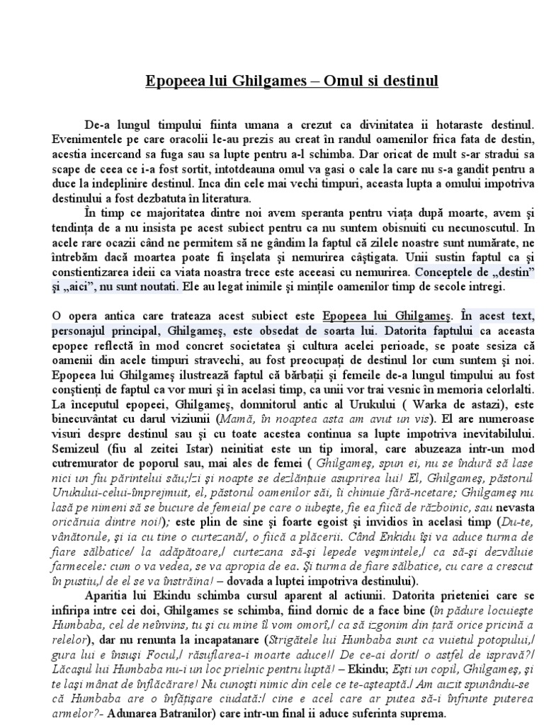 Epopeea Lui Ghilgames Comentariu Doc Document