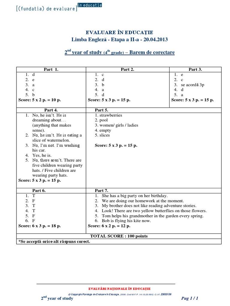 2013 Engleza Concursul Evaluare In Educatie Etapa Ii Clasa A Viia Barem