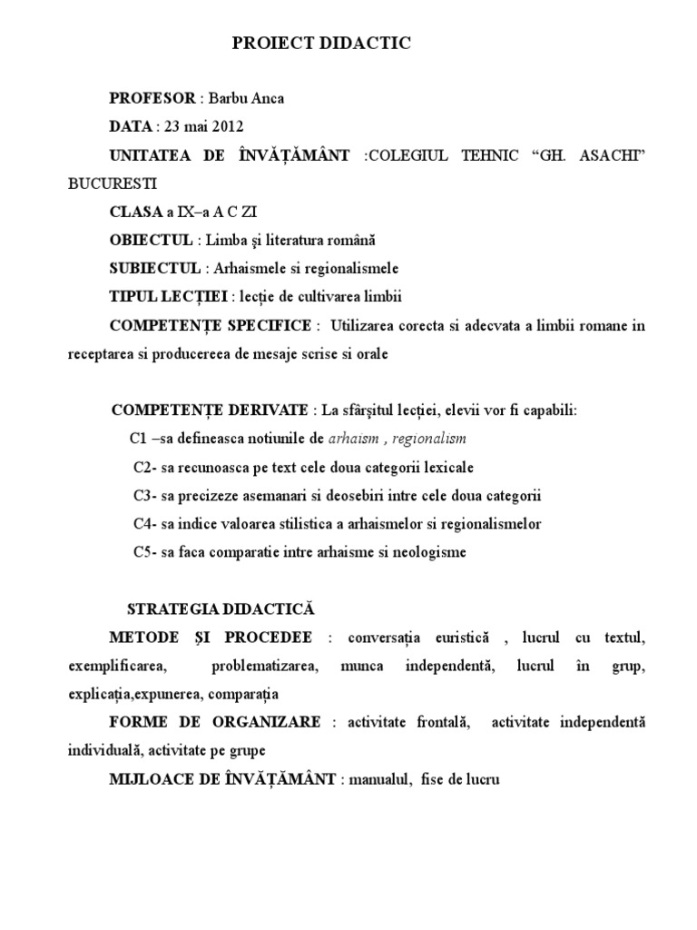Lectie Regionalisme