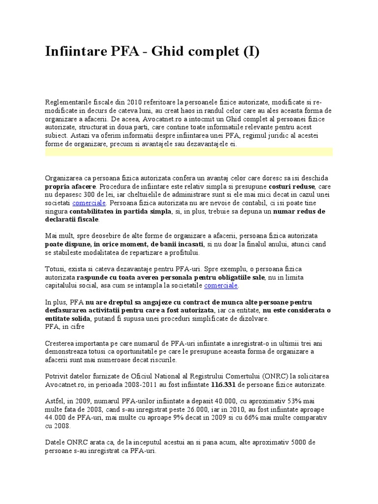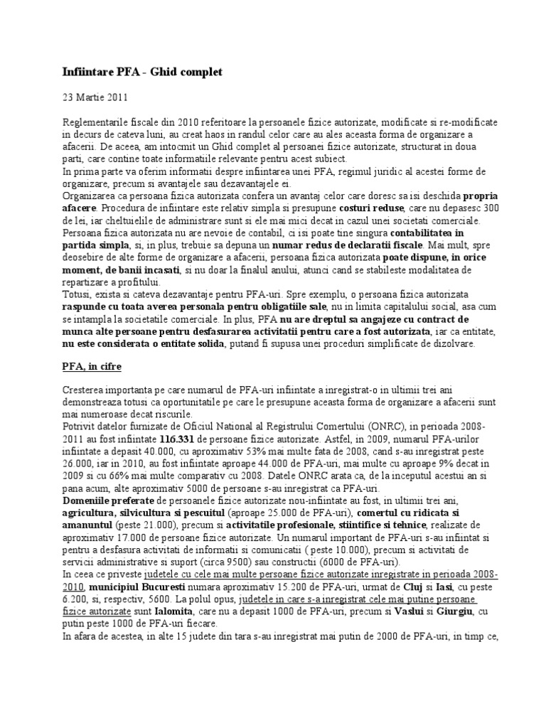 Infiintare Pfa Ghid Complet I