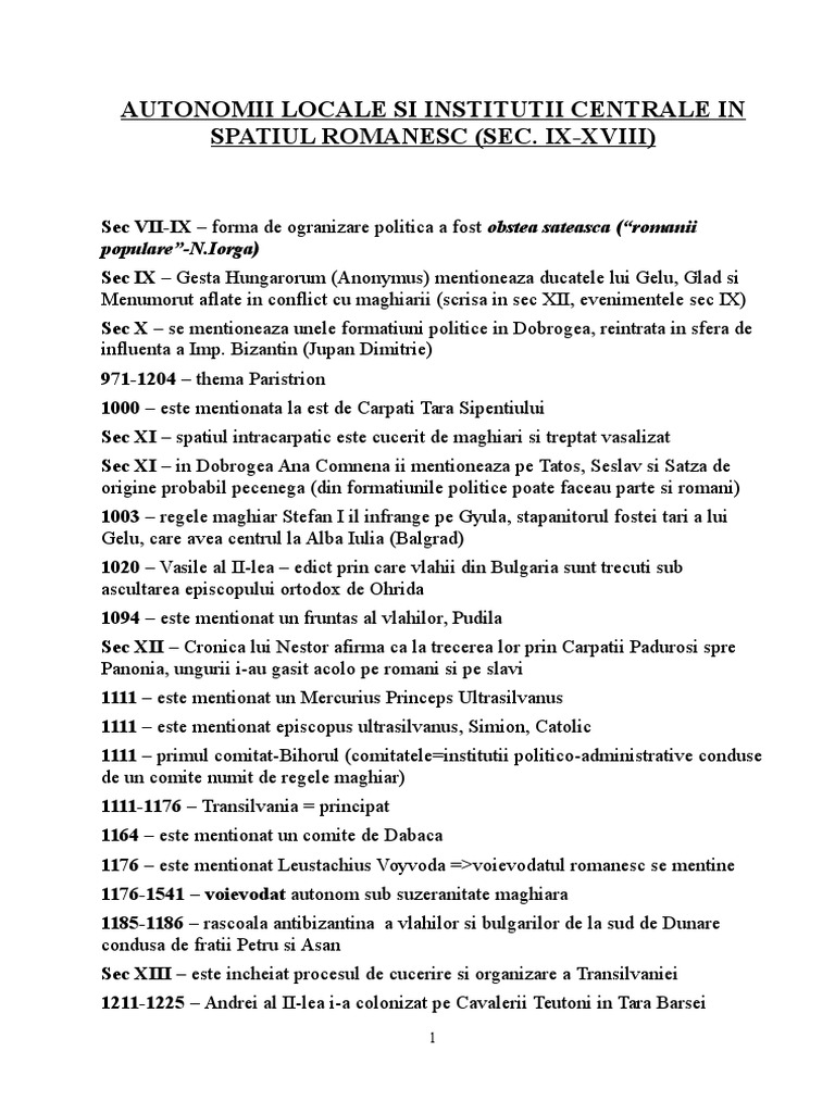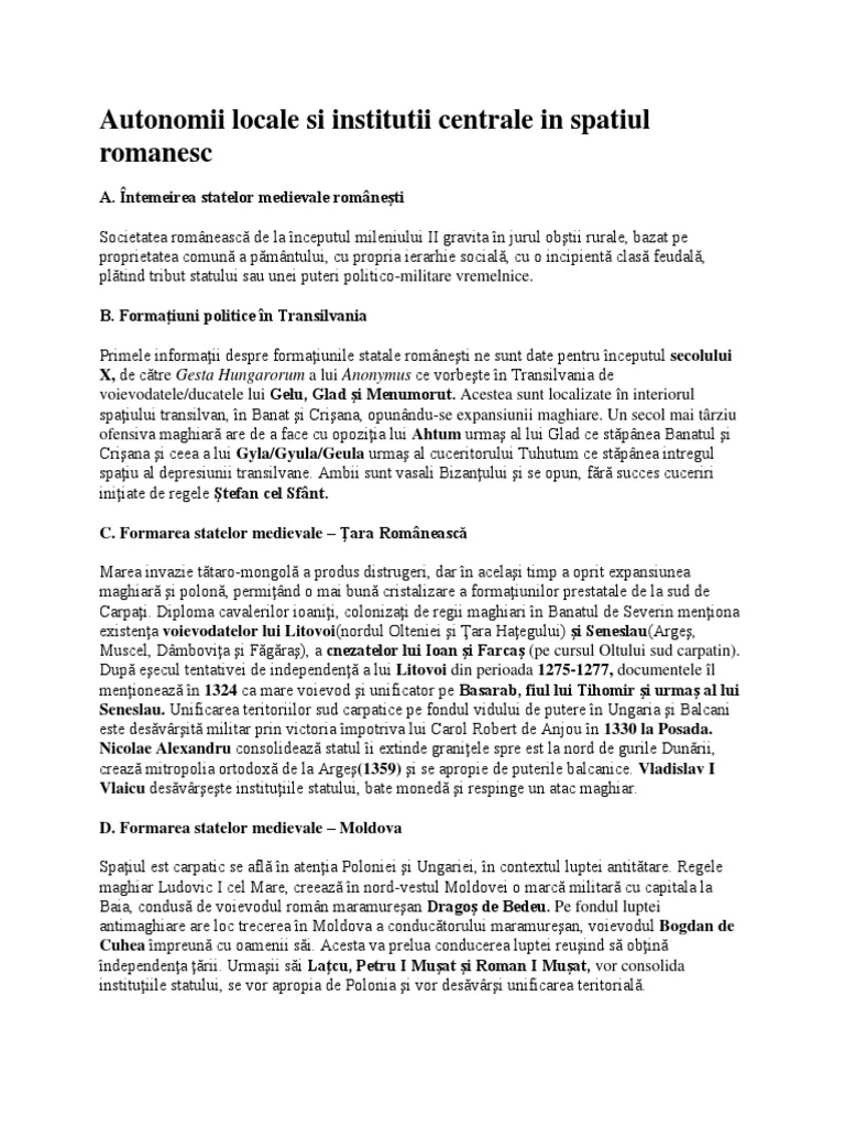 Eseu Despre Autonomii Locale și Instituții Centrale Din Spațiul Romanesc In Secolele Al Ix Lea Al Xvi Lea Liceunet Ro