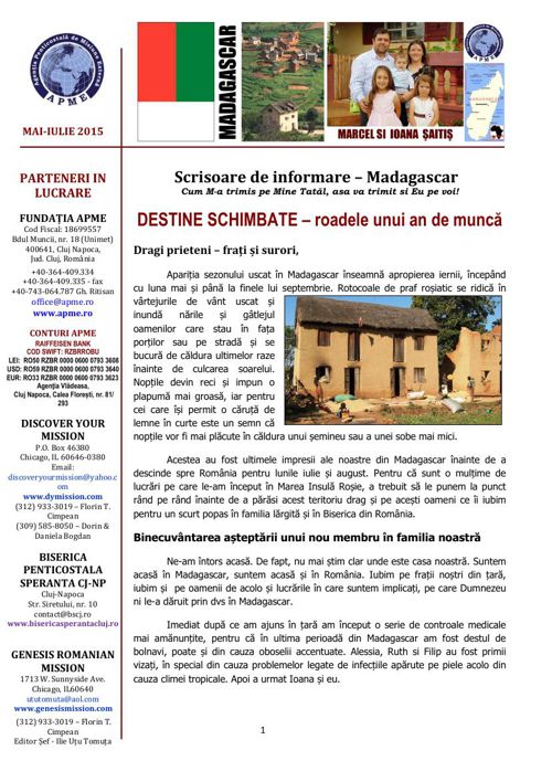 Foaie De Informare Madagascar Mai Iulie 2015 Familia Saitis Marc