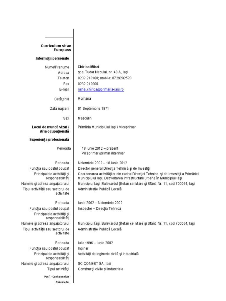Mihai Chirica Curriculum Vitae