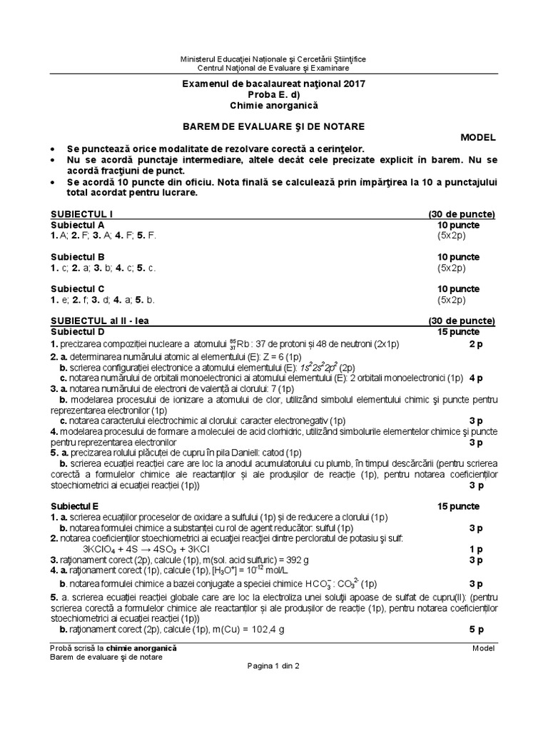 Subiecte și Barem Chimie Anorganica Bac 2017 Cerința Care I A Pus Pe Ganduri Pe Candidați Live