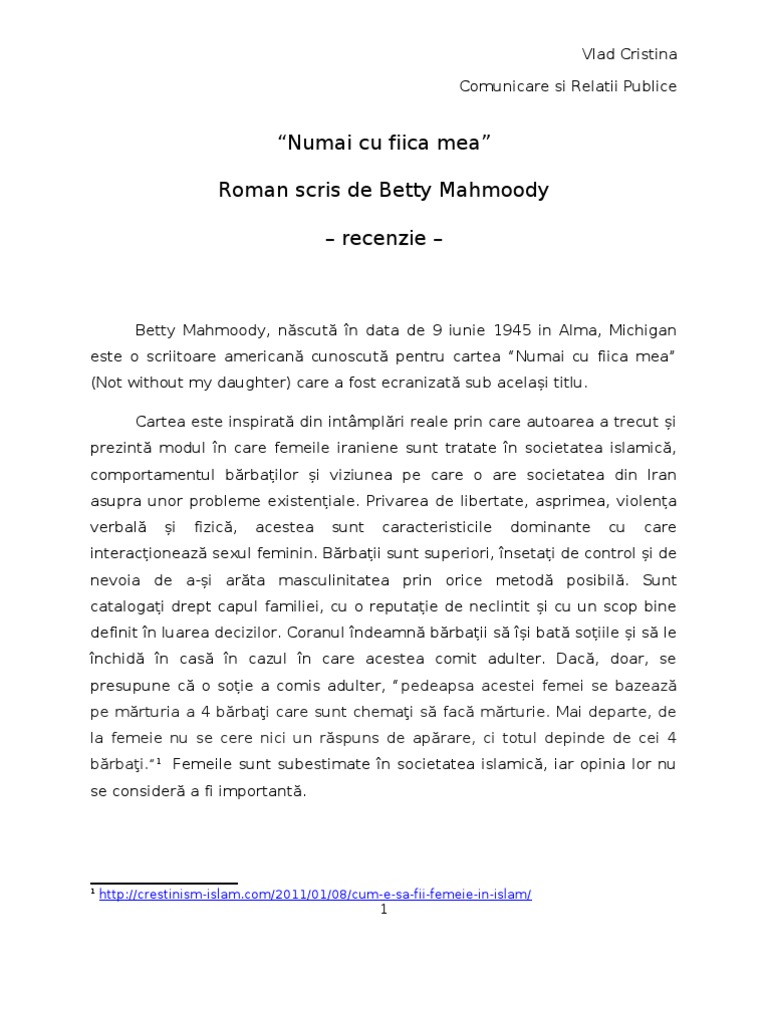 Numai Cu Fiica Mea Din Dragoste Pentru Un Copil Betty Mahmoody Sector 2 Timp Liber Si Sport Publi24 Ro