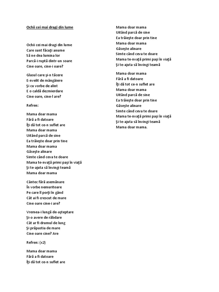 Mama Doar Mama Lyrics By Corina Chiriac Ochii Cei Mai Dragi
