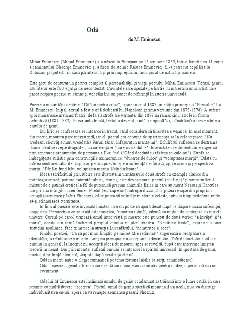 Comentariu Oda In Metrul Antic De Mihai Eminescu 137707 Graduo