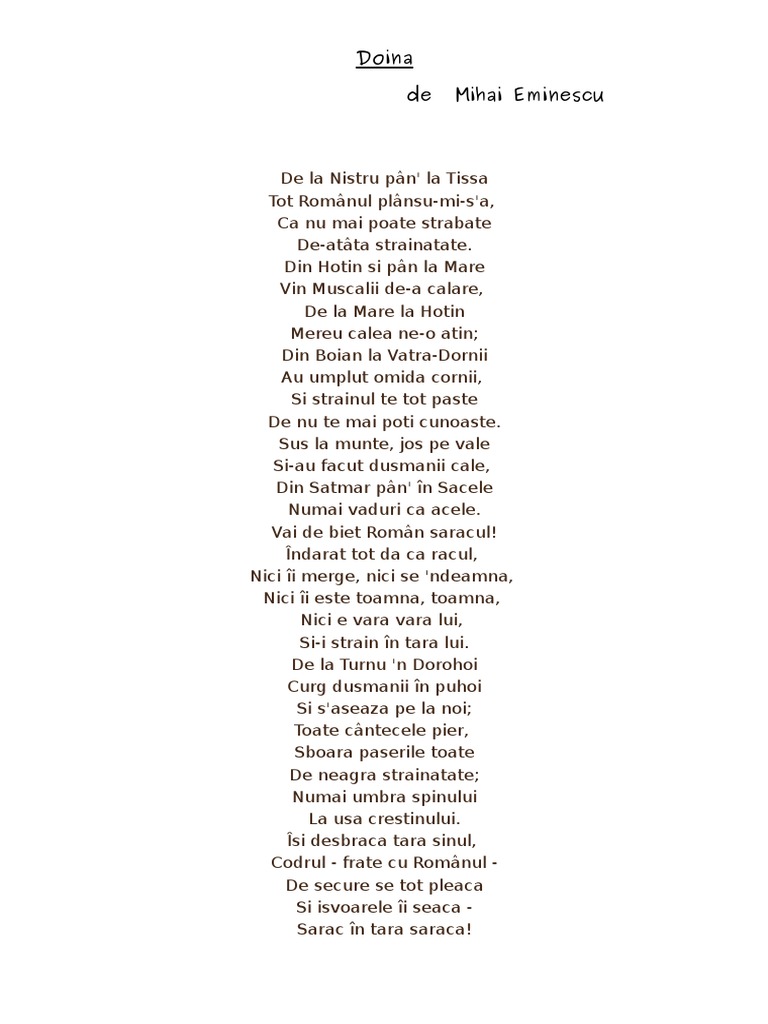 Poezia Doina De Mihai Eminescu