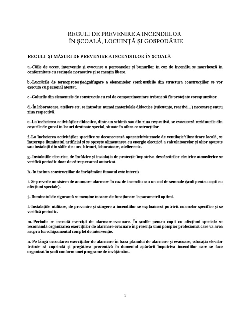Reguli și Măsuri Pentru Prevenirea Incendiilor In Instituțiile De Inv