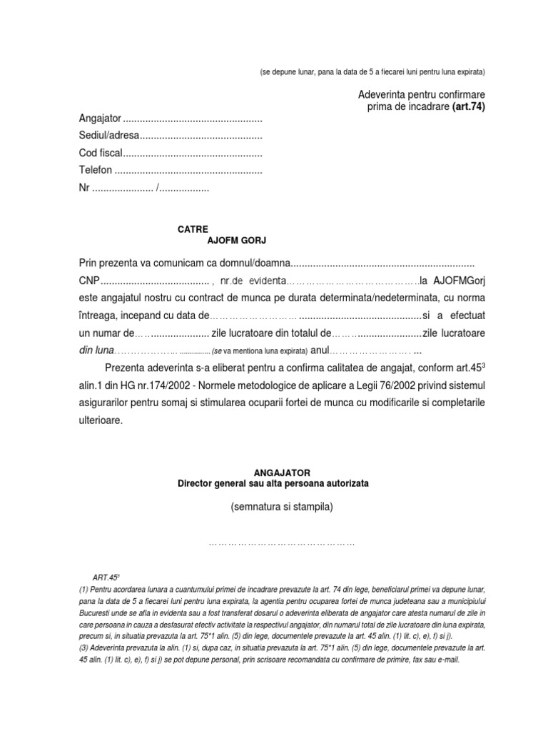 Confirmare Adeverinta Lunara Art 74