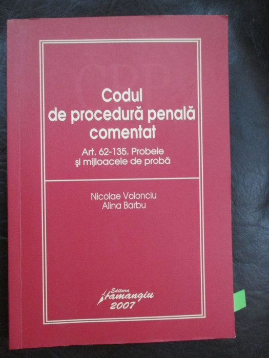 Codul De Procedura Penala Comentat Art 62 135 Probele Si Mijloacele De Proba Editura Hamangiu