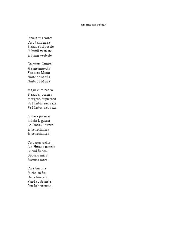 Steaua Sus Rasare Versuri Bloguniversal