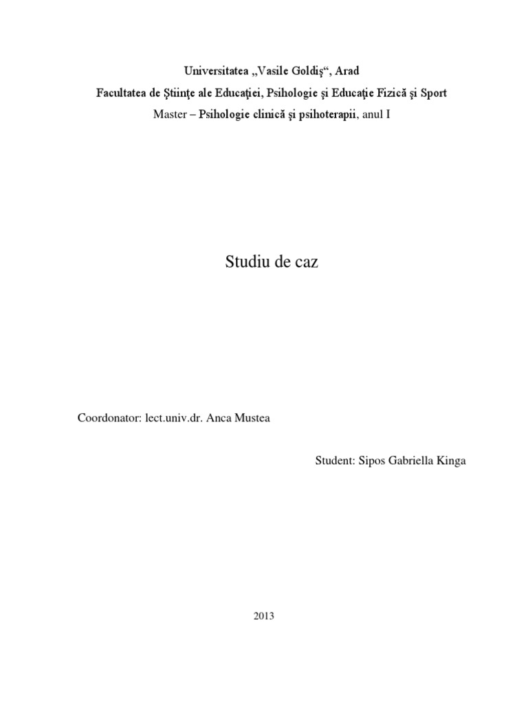 Referat Studiu De Caz Practica Psihologie Clinica Psihologie 380258