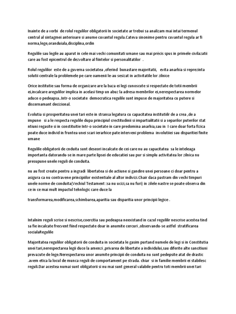 Text Argumentativ Despre Importanta Respectarii Regulilor Intr Un Domeniu