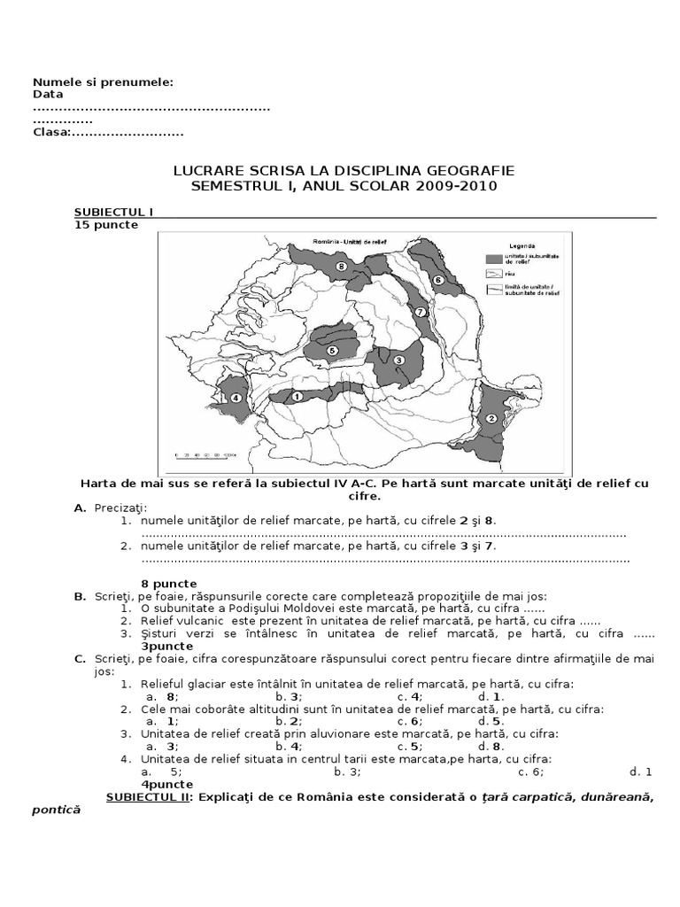 Subiect Teza Unica Geografia Romaniei Clasa A Viii A 2008 2009