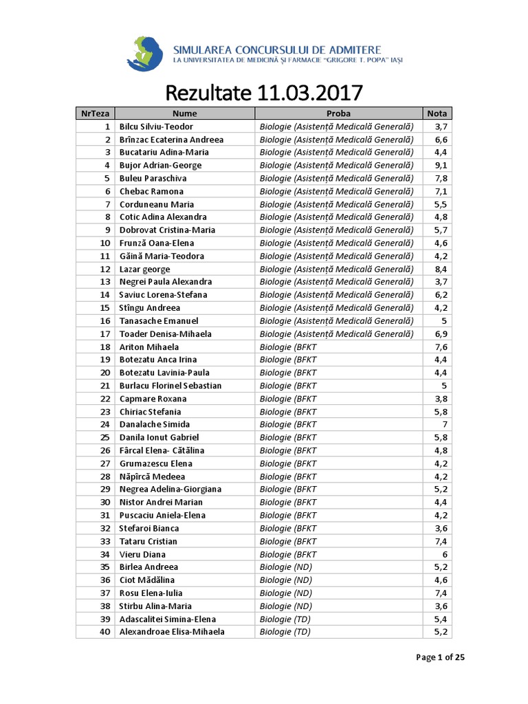 Rezultate Umf Iasi 2017 S Au Publicat Rezultatele La Admitere Medicină 2017 Iasi Consultă Le