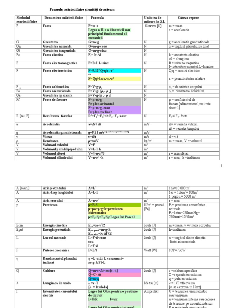 Formule Marimi Fizice