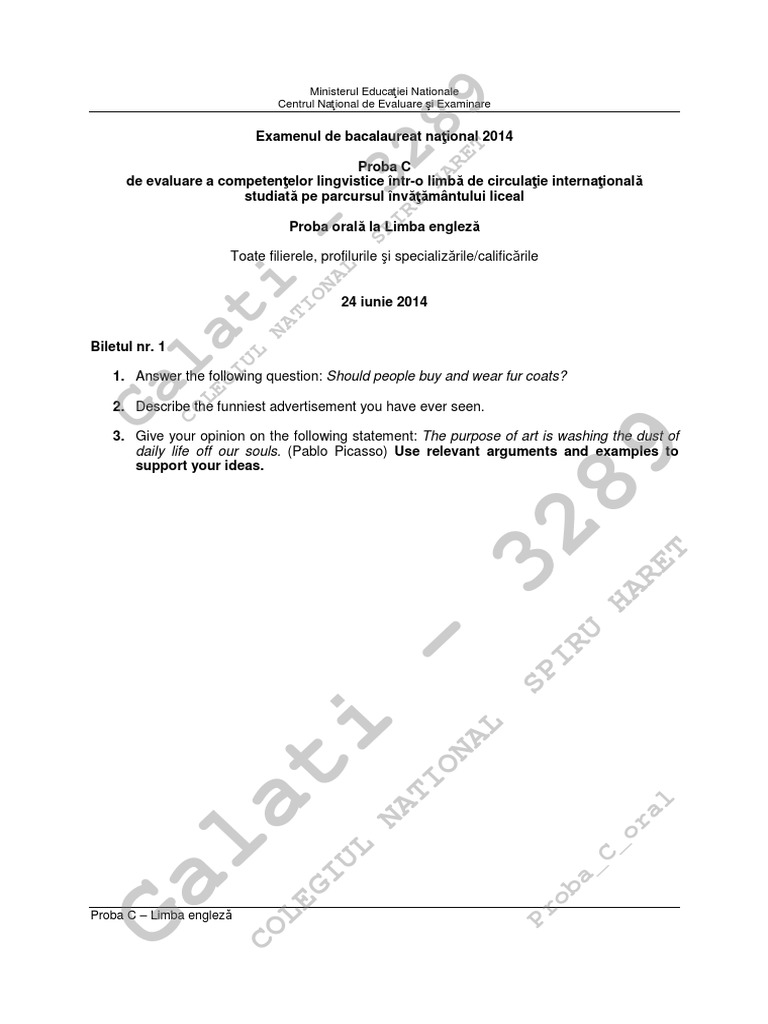 Bac2012 Limba Engleza Bilet Oral Model Subiect